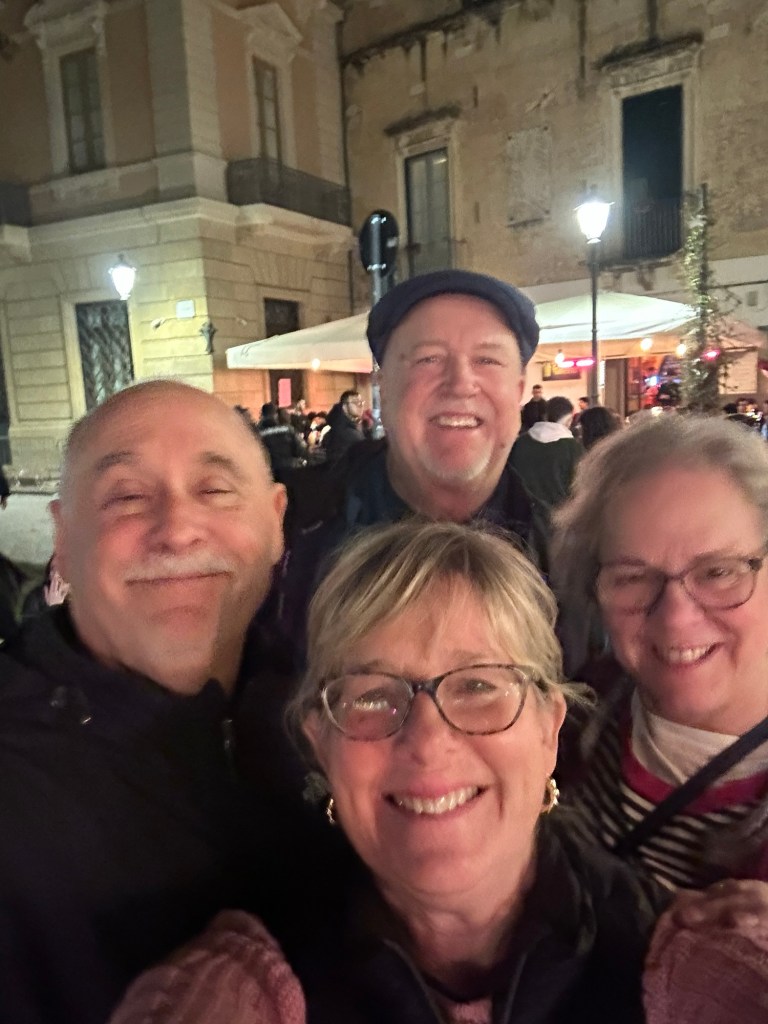 The Dimora San Giuseppe was a small boutique hotel located adjacent to a vibrant pedestrian street lined with restaurants and taverns. We grabbed a light bite to eat and celebrated being together again with spritz’s and wine. Then it was off to bed after a long day of travel.