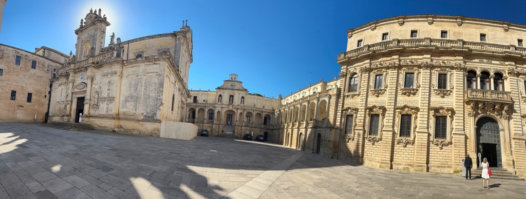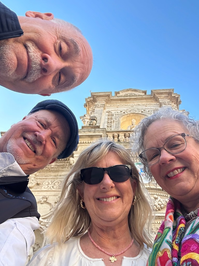 The itinerary for this trip was influenced by the homes we were able to reserve through the home exchange program called Third Home. It is our first time trying the home exchange concept and it has taken us on quite an adventure. We arrived to the Bridinsi airport yesterday evening and our friends, Dorothy and Steve who had arrived earlier in the day, were there to pick us up. We then drove to the beautiful town of Lecce. It was an adventure finding the parking garage and then our accommodations for the night but what is the point of traveling if not for the adventure! We all loved Lecce. It has a beautiful baroque old city center. I know we are tourists, but it sure was nice to visit a city in Italy that was not overrun with throngs of tourists.