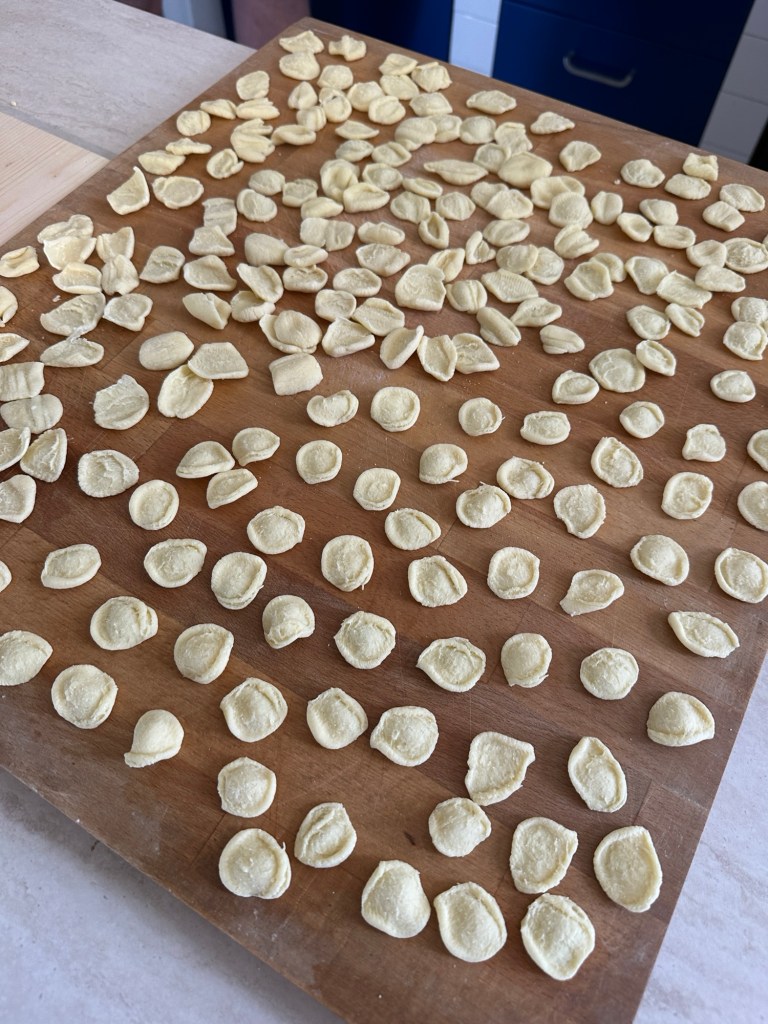 One of our favorite things to do when visiting another country is to take a cooking class. We feel it is an excellent way to interact with local folks and learn more about their culture. Today’s was extra special as it was held in the home of a local family. We cooked with Agnes who translated for Angela, her mother, who is the primary cook of the family. It was like being invited as a special guest into their home. It was all hands on deck for the preparation of a delicious Apulian meal.
