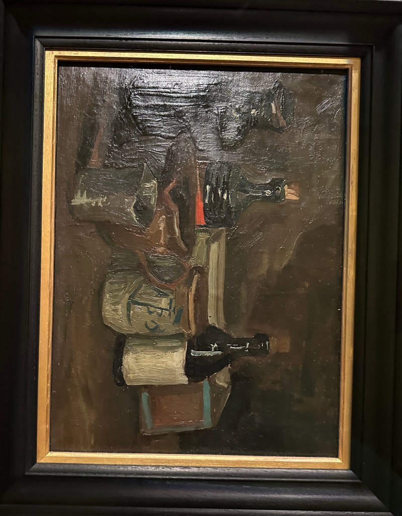 As a struggling artist Van Gogh often used both sides of his canvasses. These two paintings are on the same canvass. The still life was painted during his Dutch period, the self portrait during his years in France.