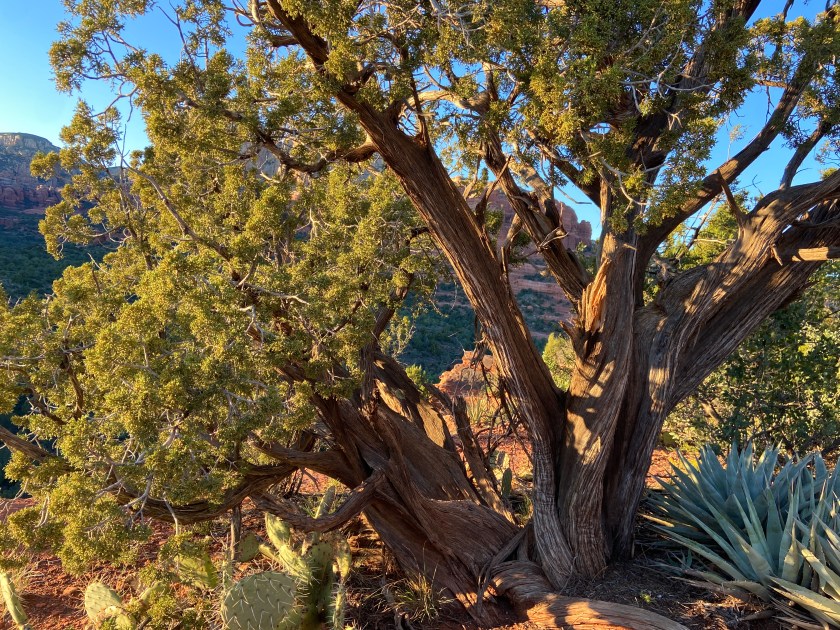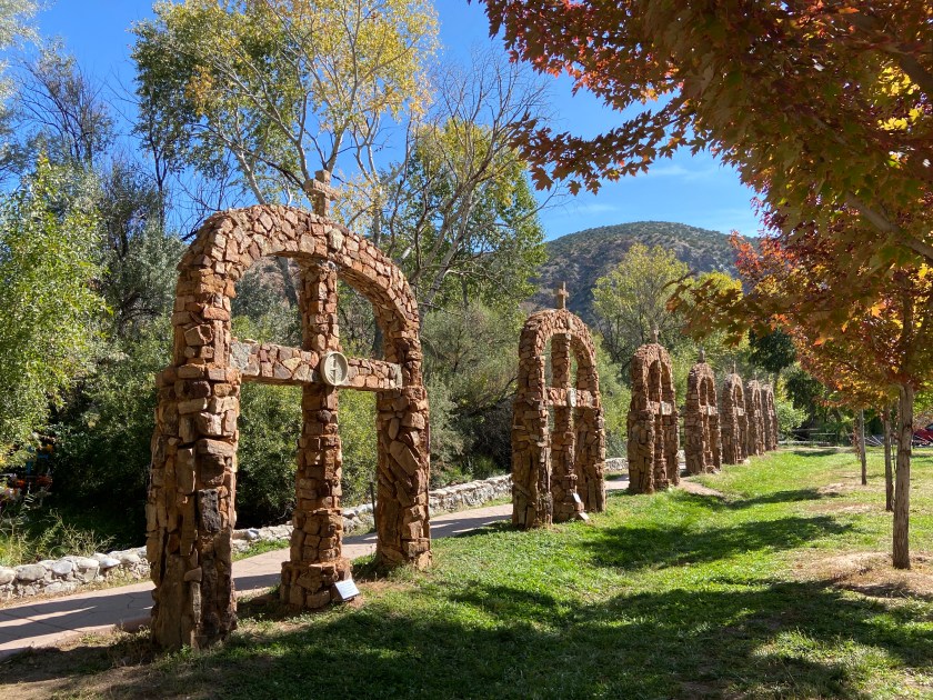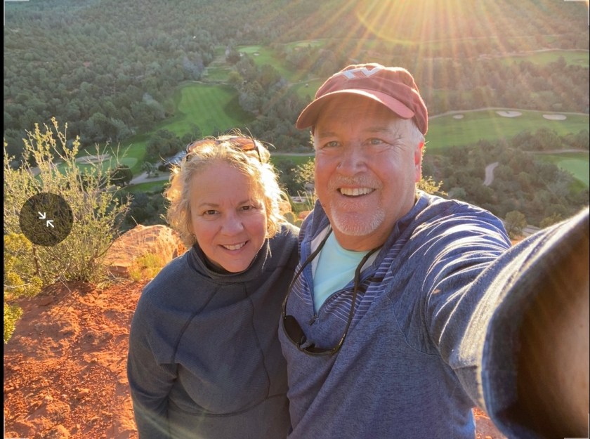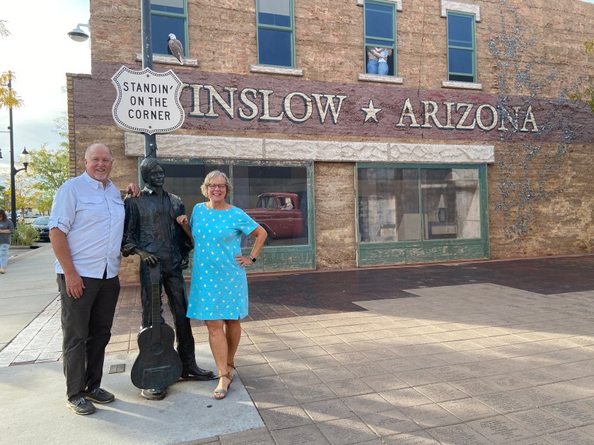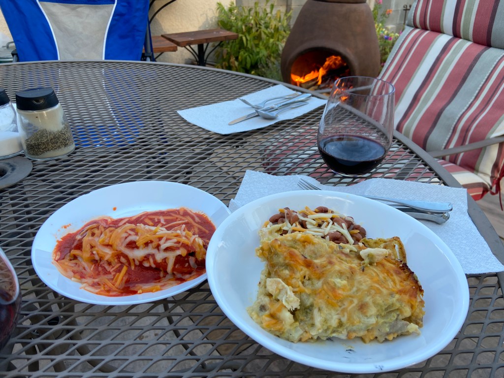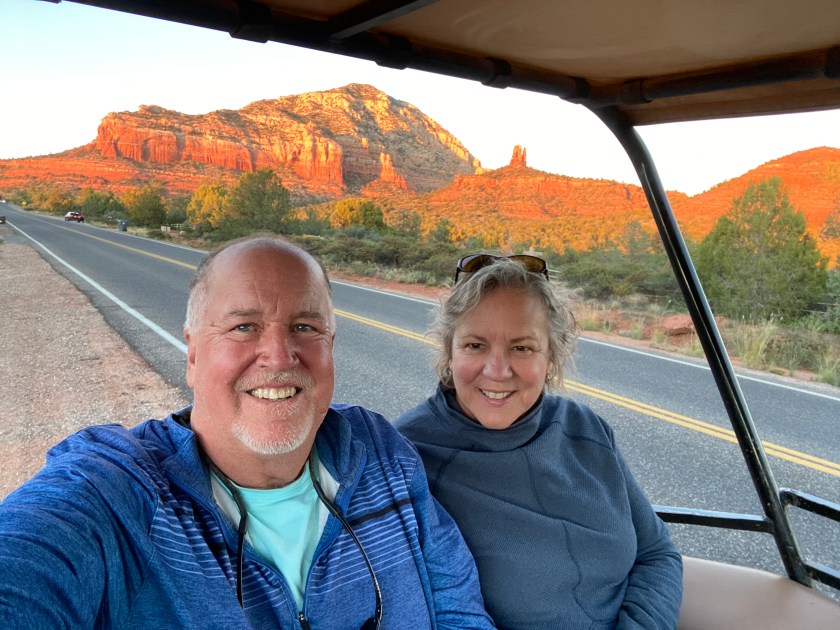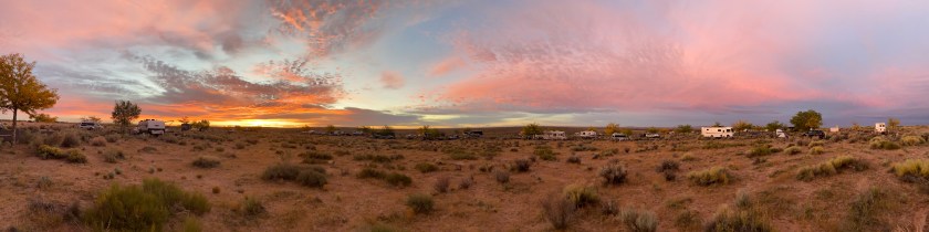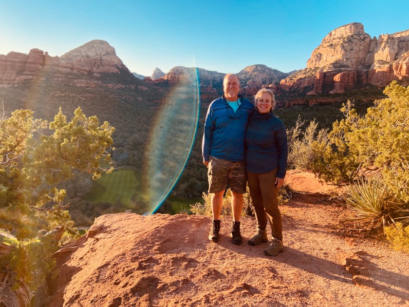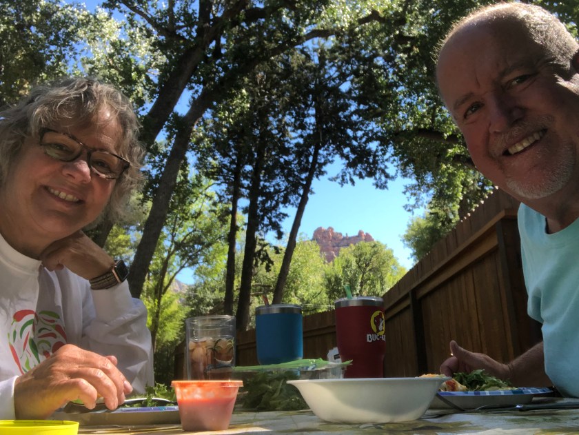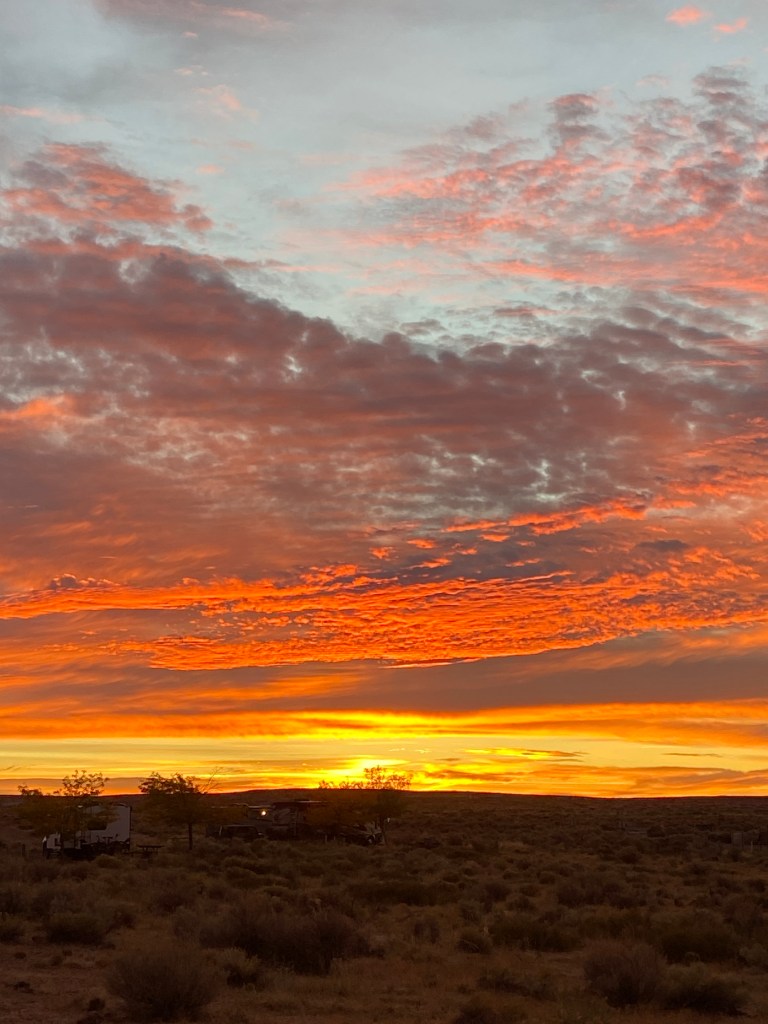 After an hour long wait in line to enter the Grand Canyon National Park, we arrived at our camp site in Trailer Village. We ate a quick lunch and then practically ran to the rim trail. Ed kept saying “slow down” but I could not stand the wait any longer. My first look was everything I had imagined and more. The grandeur was breathtaking and moved me to tears. This response has happened to me a few other times, when first viewing Monet’s water lilies, and when being caught by surprise of the magnificence of Klempt’s ”The Kiss”. This time though, it was God’s work, and he out did himself. We walked a four mile loop from the campsite along the rim trail and each view was as impressive as the next. It had snowed the night before and the temperatures remained chilly enough that the snow in the woods at our campsite did not melt. The Outland Firepit came in handy as wood fires are not allowed here. It was the perfect setting for a celebratory drink!