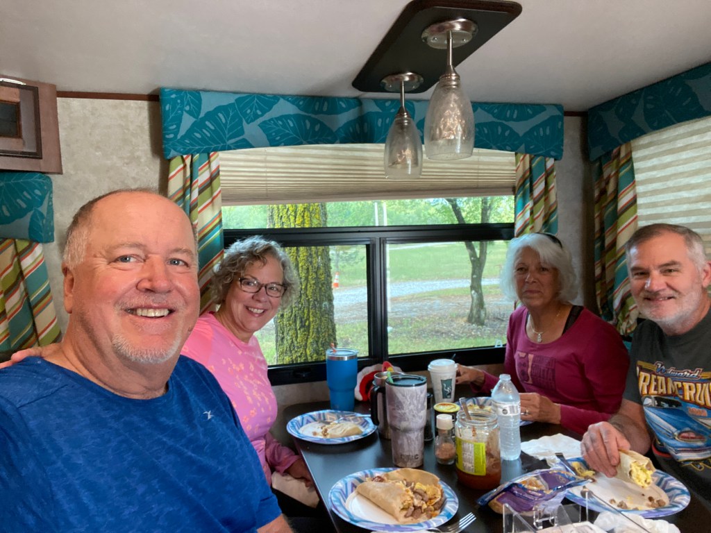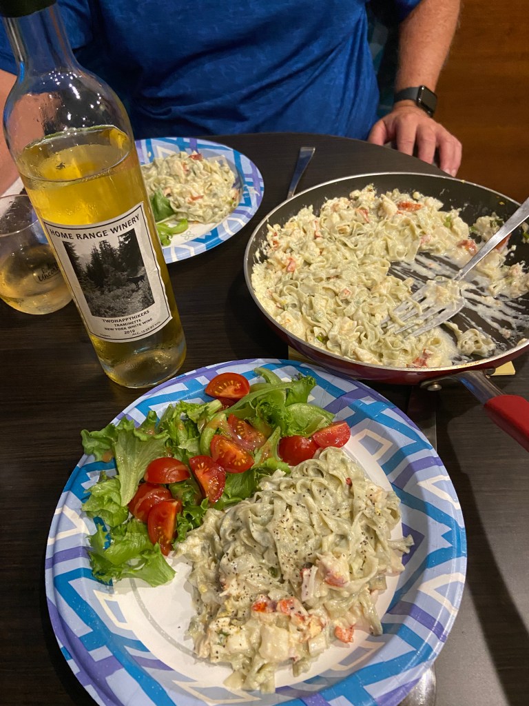 We started at First Landing State Park where we had a nice visit with Mom, to the parking lot of Midnight Oil Brewing where we caught up with some old friends, then on to the Linden Estates Winery. The last night on the road was spent in the LL Bean parking lot where we met up with our camping partners for the next 10 days.