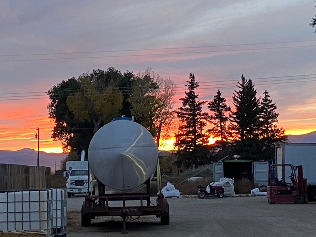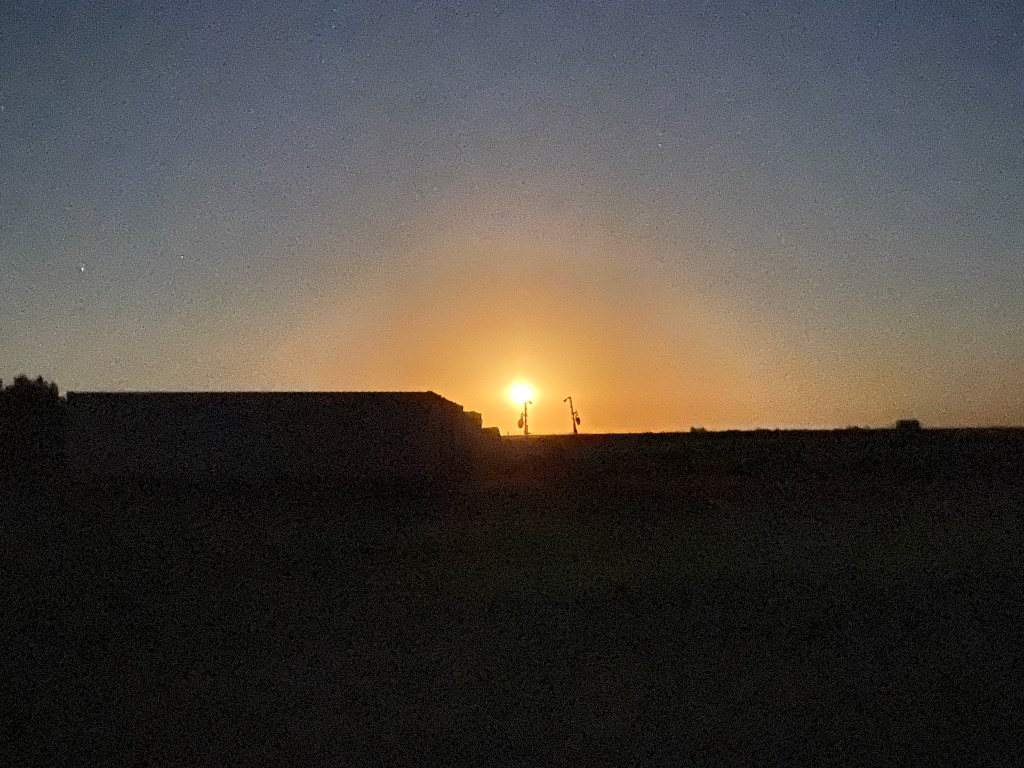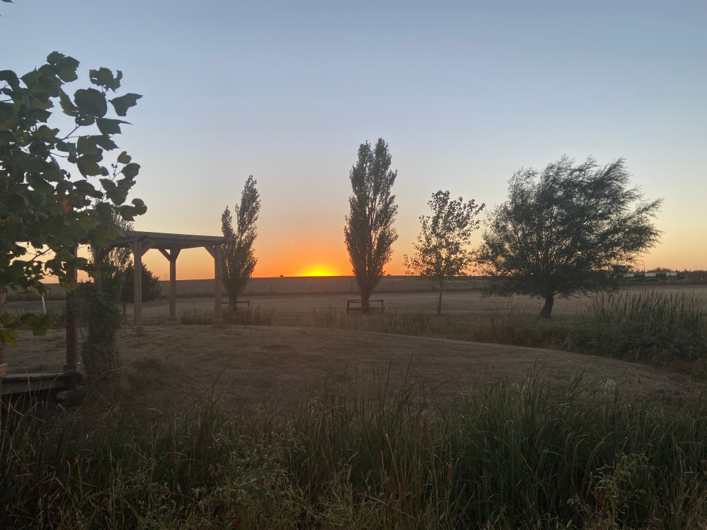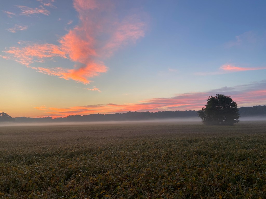 Sunrise over the Soybean field, looking out our frontdoor.