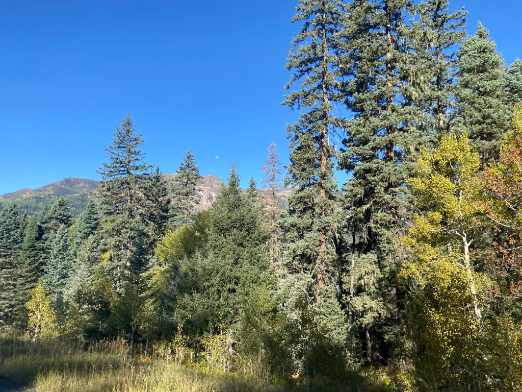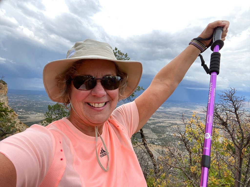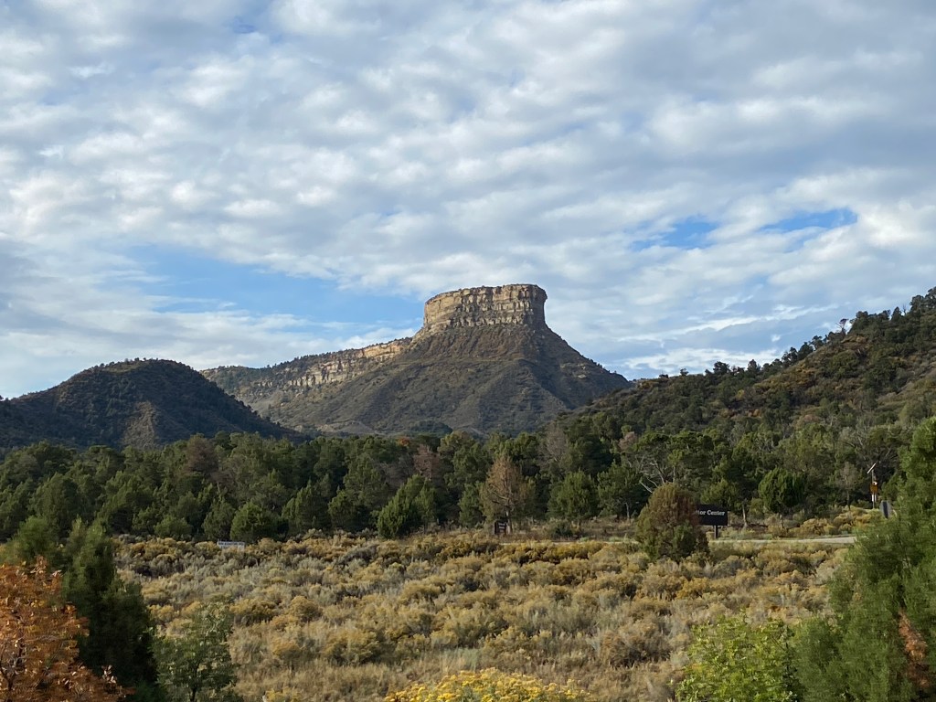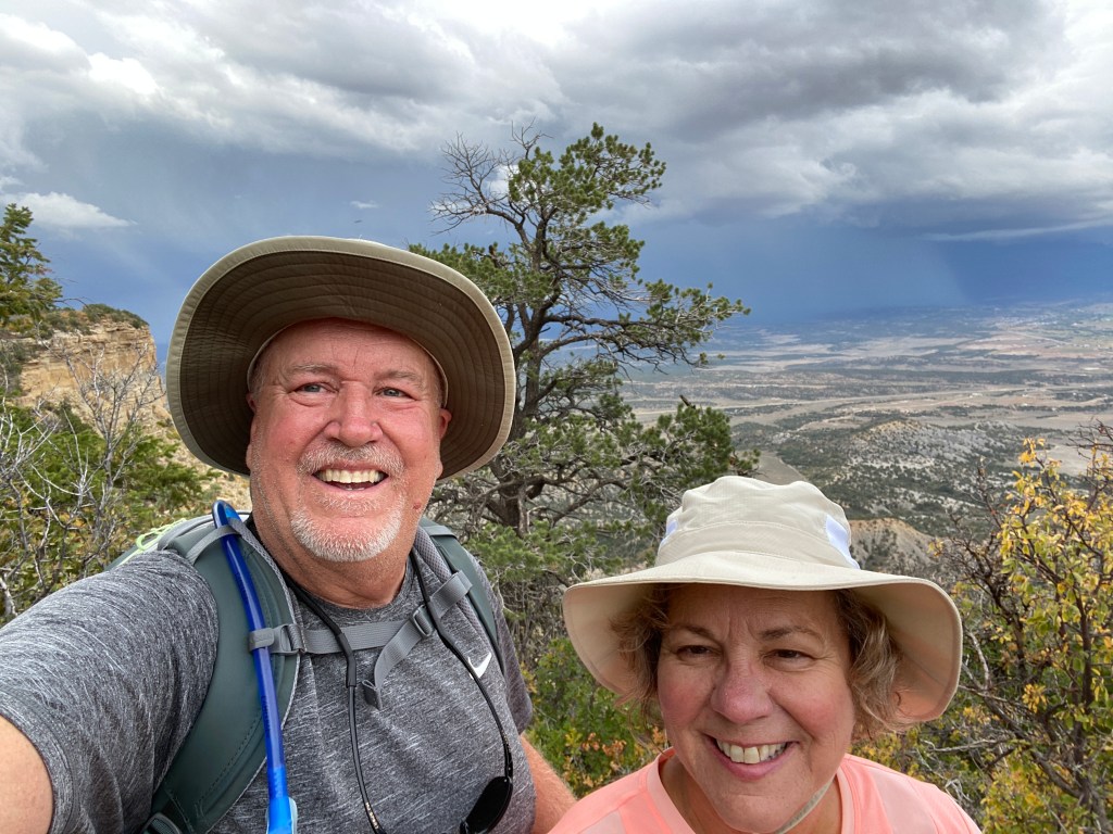 September 27, my birthday eve! Ed and I hiked the Point Lookout trail right from our campsite yesterday. It is only about a 2 mile round trip hike, but it was at 8,000 foot elevation up the backside of the mesa pictured above. We are still adjusting to the altitude. Unfortunately, we could not linger and enjoy the panoRamic views. Without cell service we had not realized a big storm was brewing in the east. Thankfully, we made it back to the RV before the rain began.