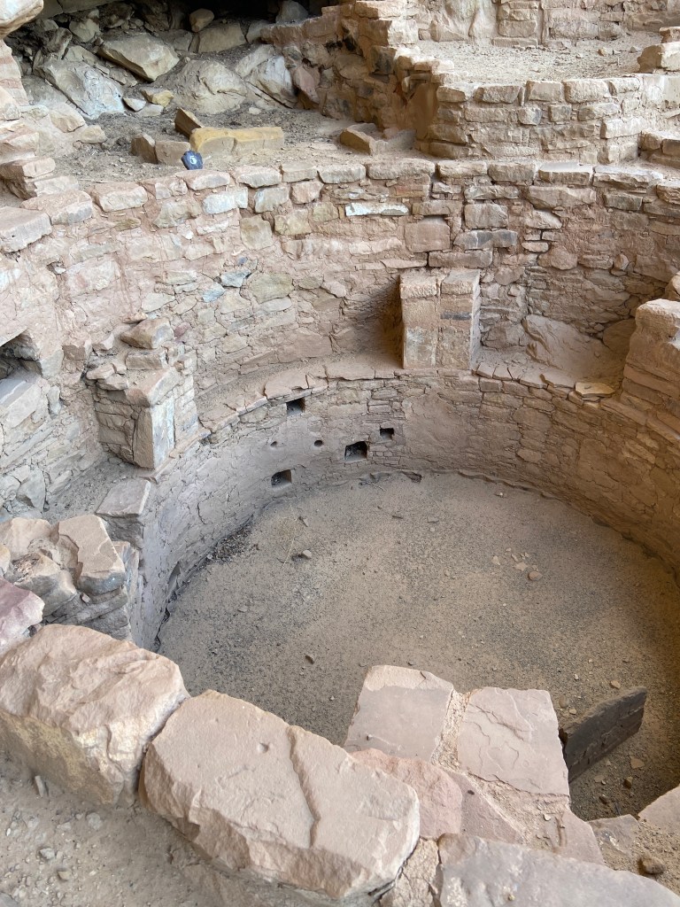 September 24 &25, Experiencing Mesa Verde both on our own and with a tour guide was an enriching experience. There are so many stereotypes about the Native American cultures and our very knowledgeable tour guide helped us better understand the Pueblo People. They saw the “green table” of land from afar and skillfully built the community we now know as Mesa Verde. They planted crops and built either pit homes or Adobe homes on top of the mesa. The iconic cliff dwellings were actually used for storage. The only people who lived there were those charged with protecting the valuable food stores. It was not the white man who drove the inhabitants to migrate elsewhere. Instead, by using all the trees for building dwellings and for firewood, eventually they destroyed the habitat of all the wildlife they hunted for food.